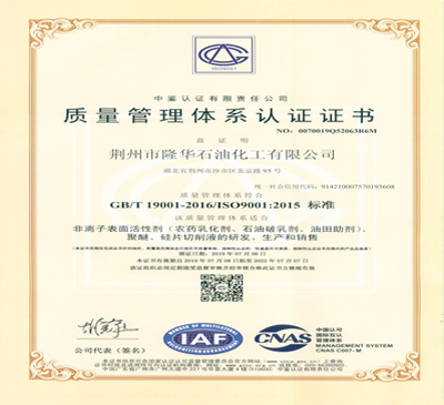 荊州市隆華石油化工有限公司是由原湖北省沙市石油化工廠(成立于1966年)改制后組建的有限責任公司,原湖北省沙市石油化工廠是原國家化工部、石油部定點生產農藥乳化劑、原油破乳劑專業廠家之一,改制后新公司注冊資金7000萬人民幣。公司位于三國故里,荊州市經濟技術開發區。荊州沙市機場便捷快達,漢宜高鐵比鄰而過,黃金水道長江相伴!